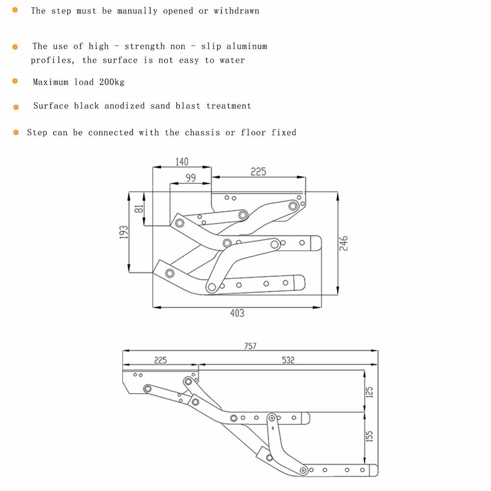 - Drop Height to first tread: 155mm