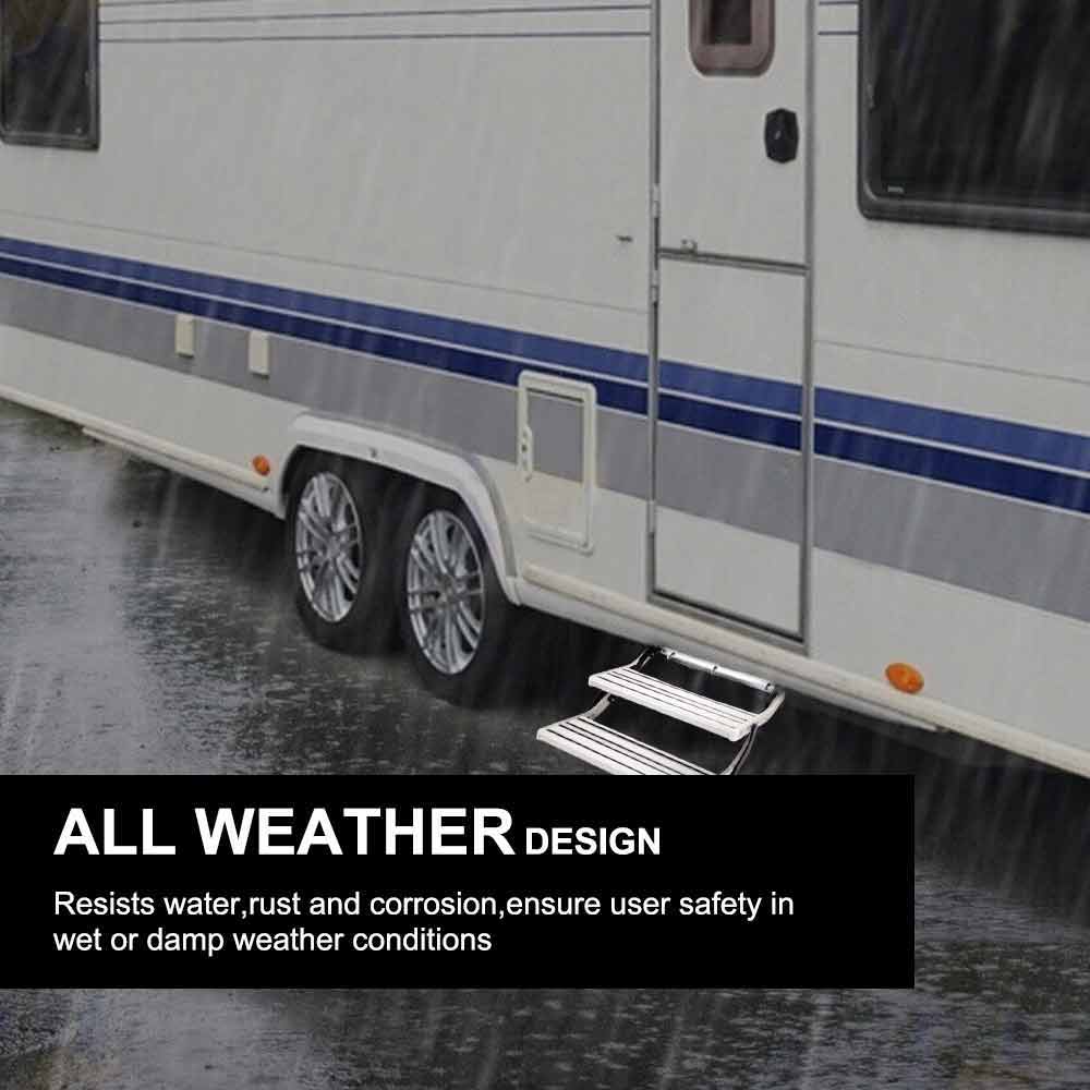 LED LIGHT DOUBLE ALUMINIUM PULL OUT CARAVAN STEP - RV PART ACCESSORIES STEPS FAN