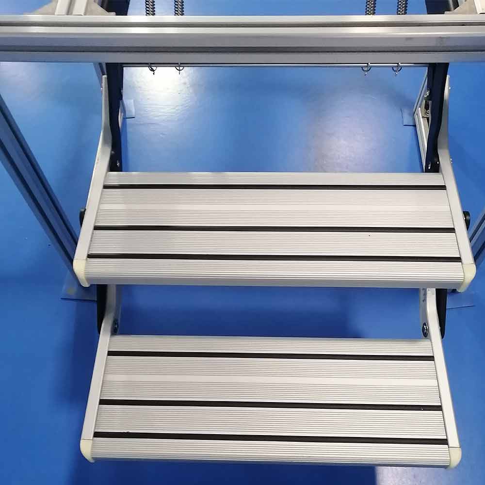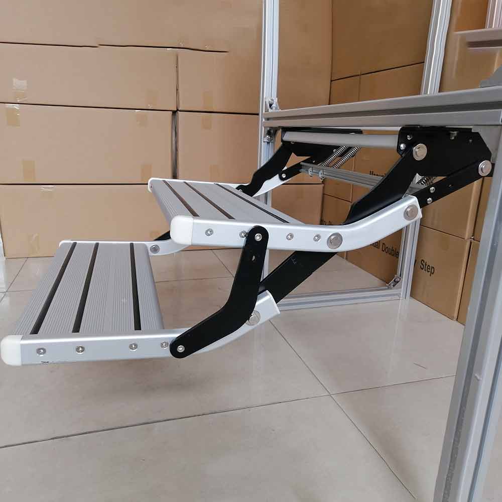 The step featured spring-loaded hinges, anti-slip ribbed tread with integrated rubber strips.