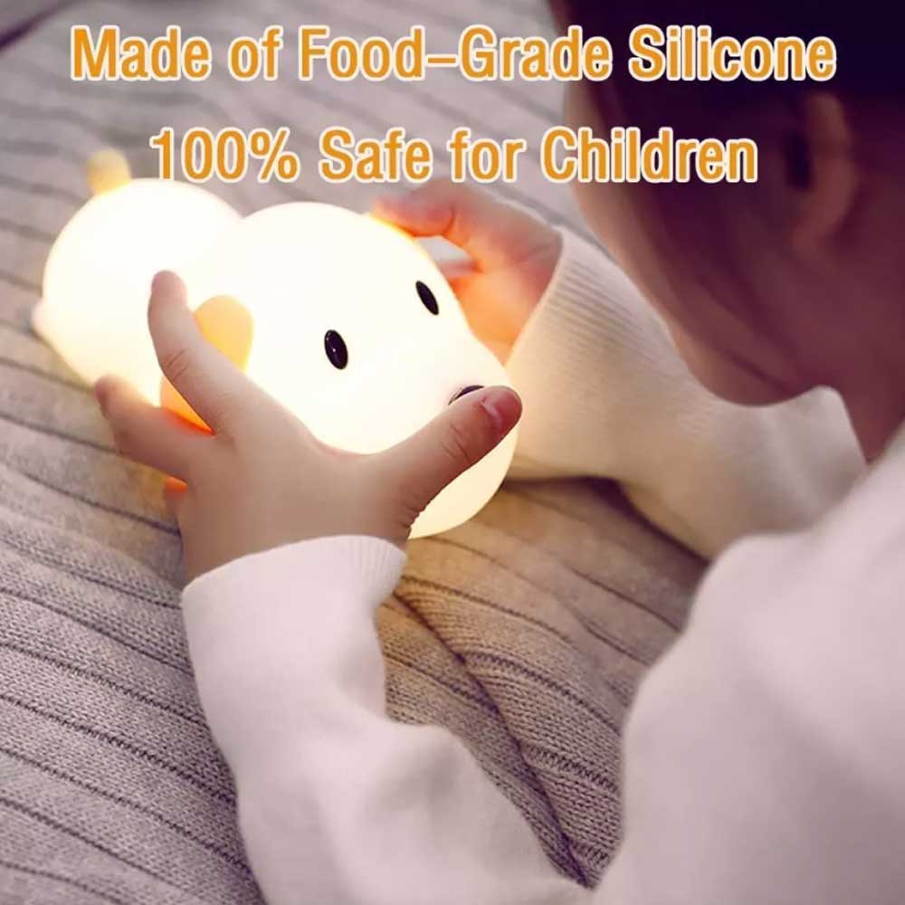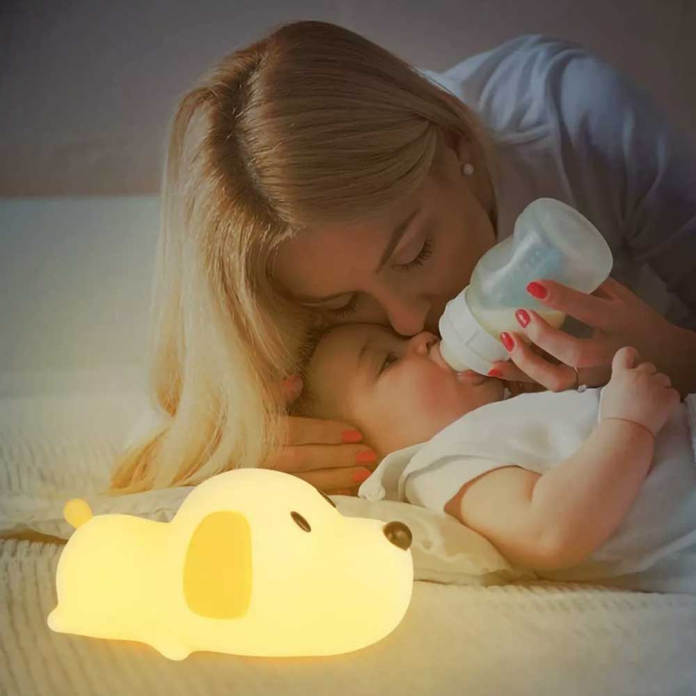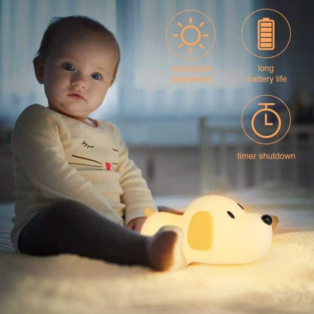 LED Kids Night Light Cute Puppy Dog Soft Silicone Lamp USB Rechargeable Baby Nursery Lamp Touch Dimmable Timing Nightlight
