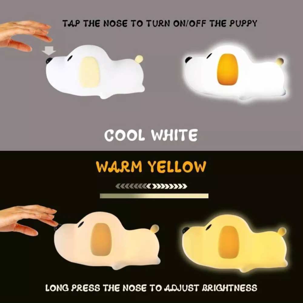 LED Silicone Night Light Rechargeable Cute Puppy Dog Touch Lamp Kids Bedroom Gift
