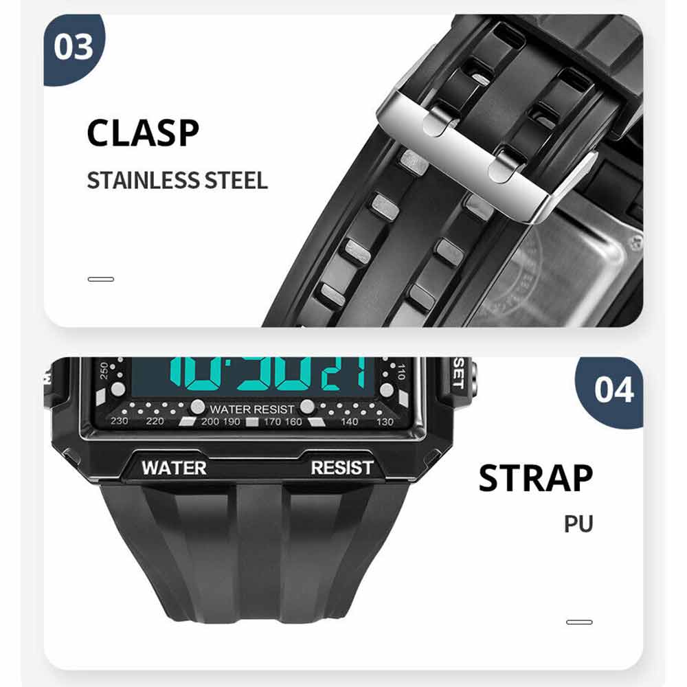 Fashion Men Sports Electric Watch Waterproof Shock Resist Large Screen Watch
