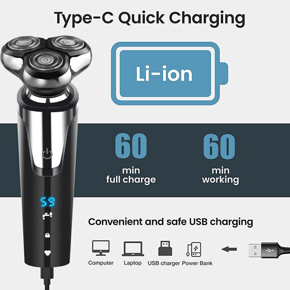 Smart & Portable: This Men's electric shaver has a built-in large LCD screen display, such as display: battery