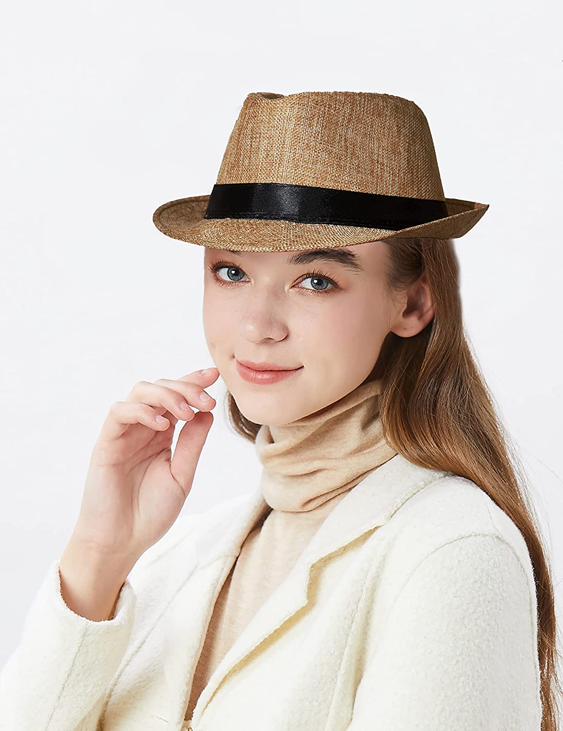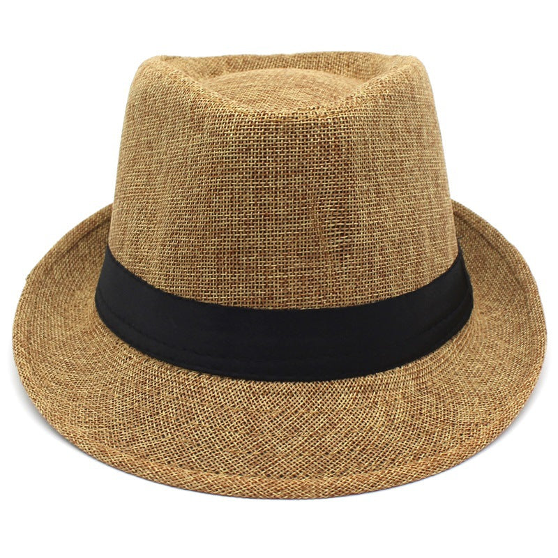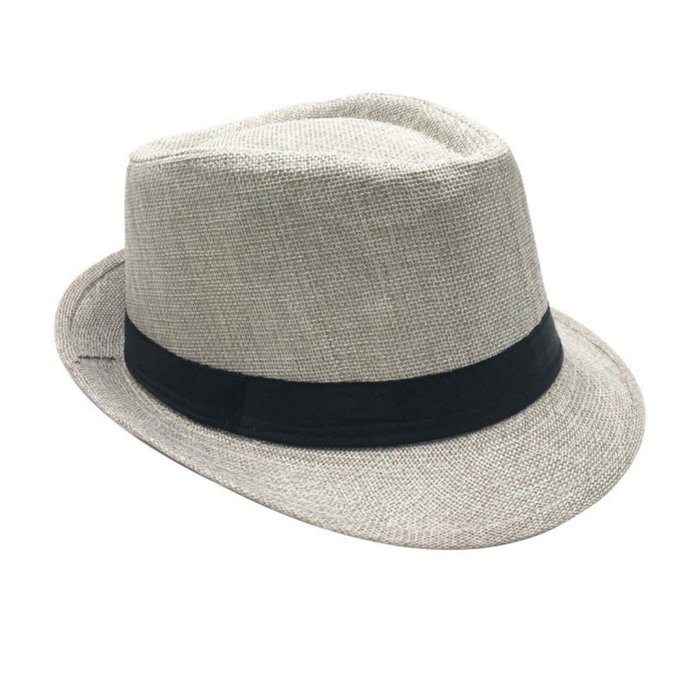 Men's Fedora Hat Trilby Summer Beach Sun Straw Hats Men Womens Panama Cap Brim