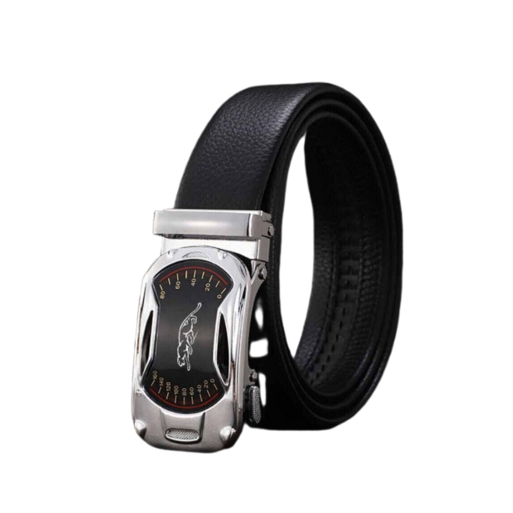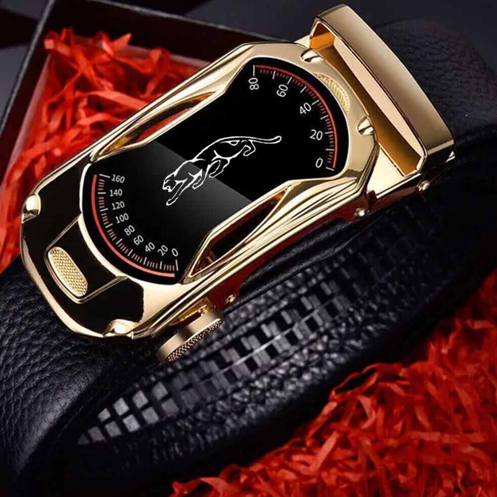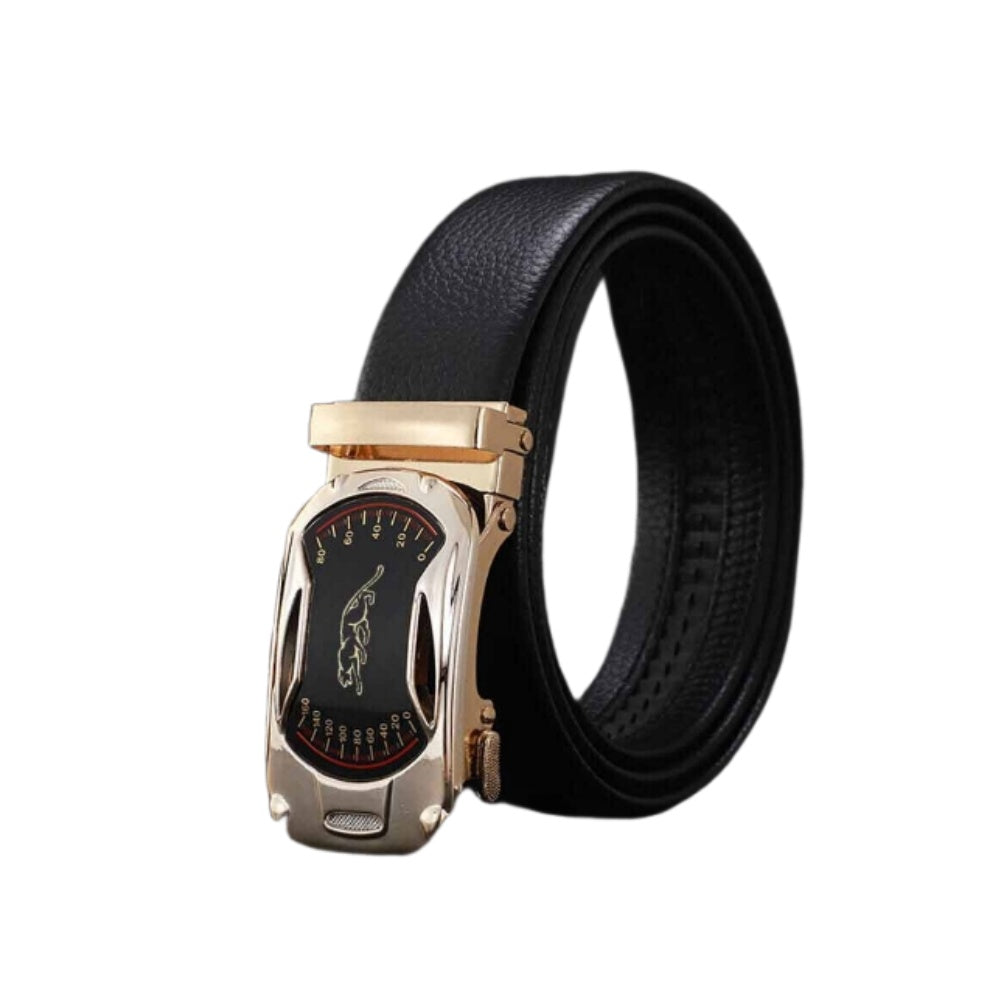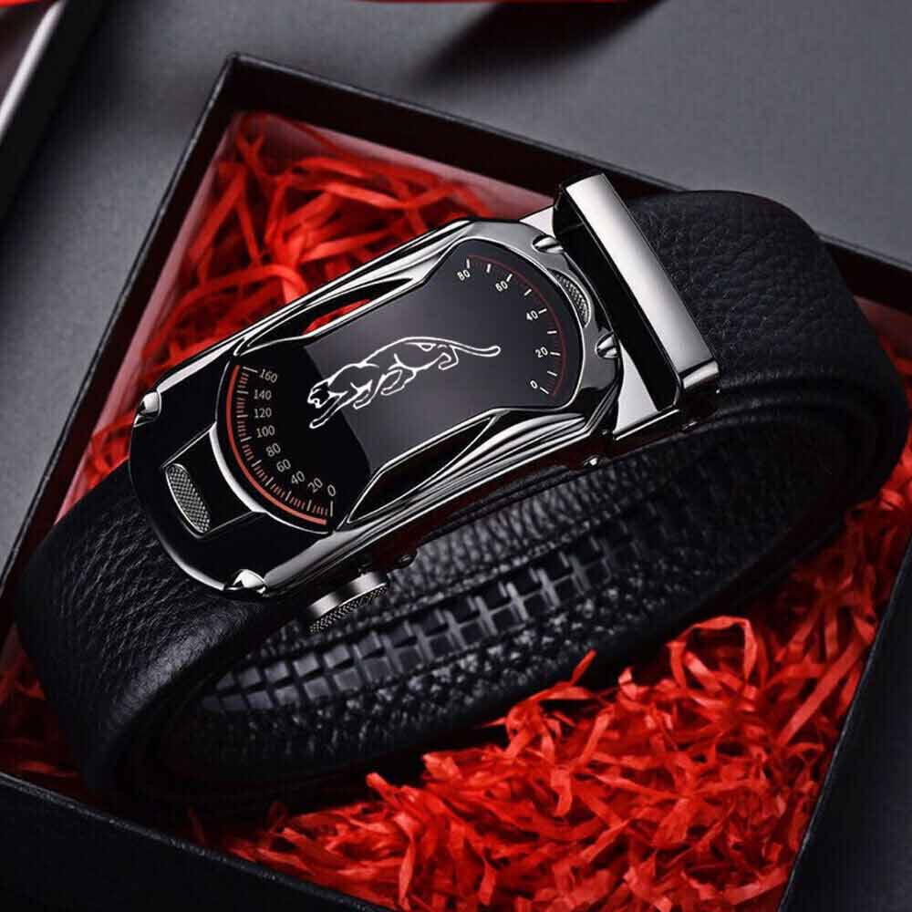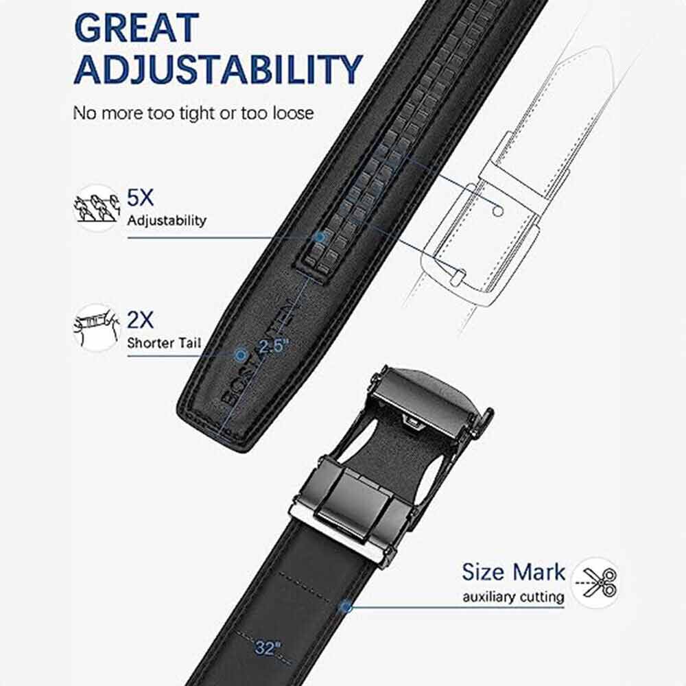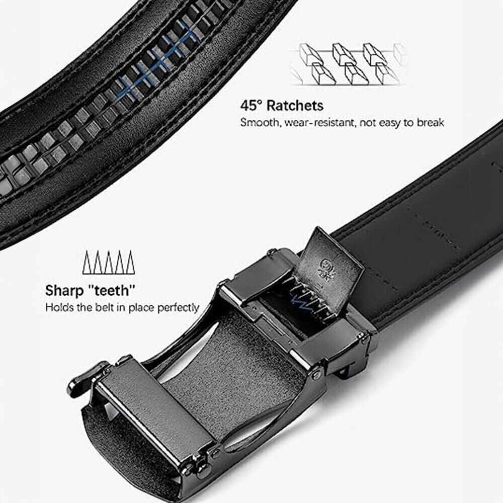The belt is made of leather with easy to fasten and unfasten buckle. Ratchet design allows adjustment to your exact, comfortable fit. Belt comes in a distinguished-style, drawstring bag and is carefully packed in a handsome box. Suitable gift for any gentleman.
