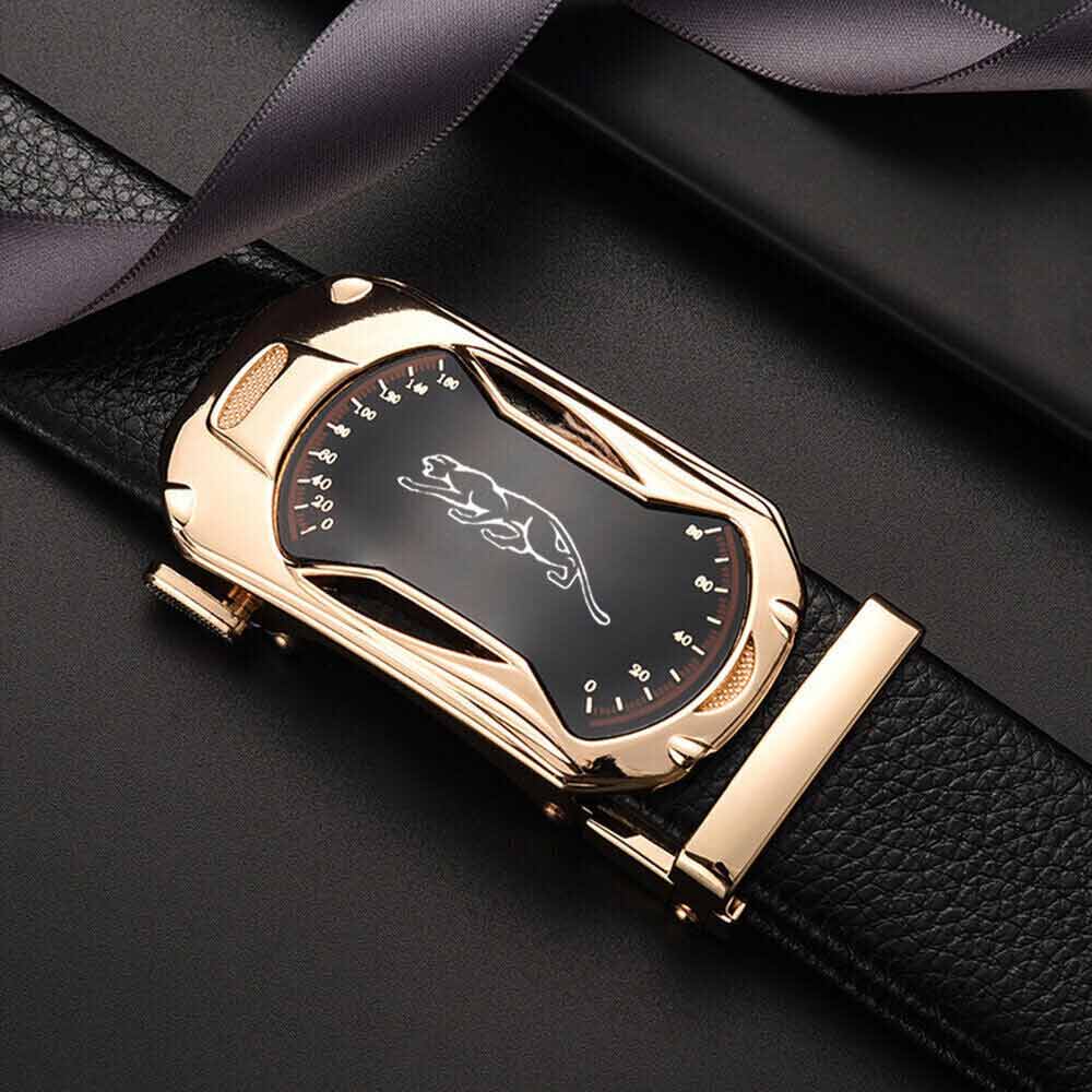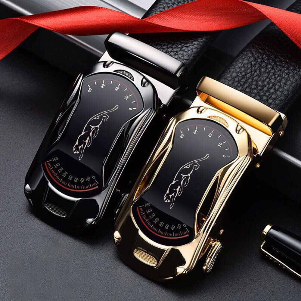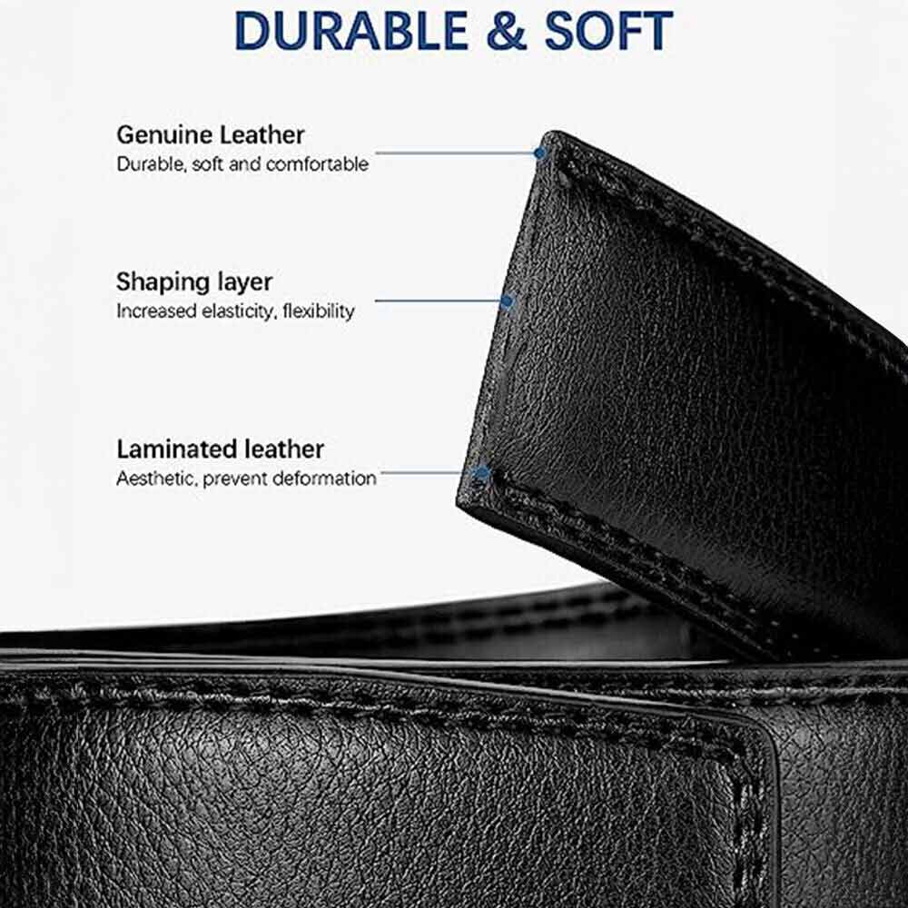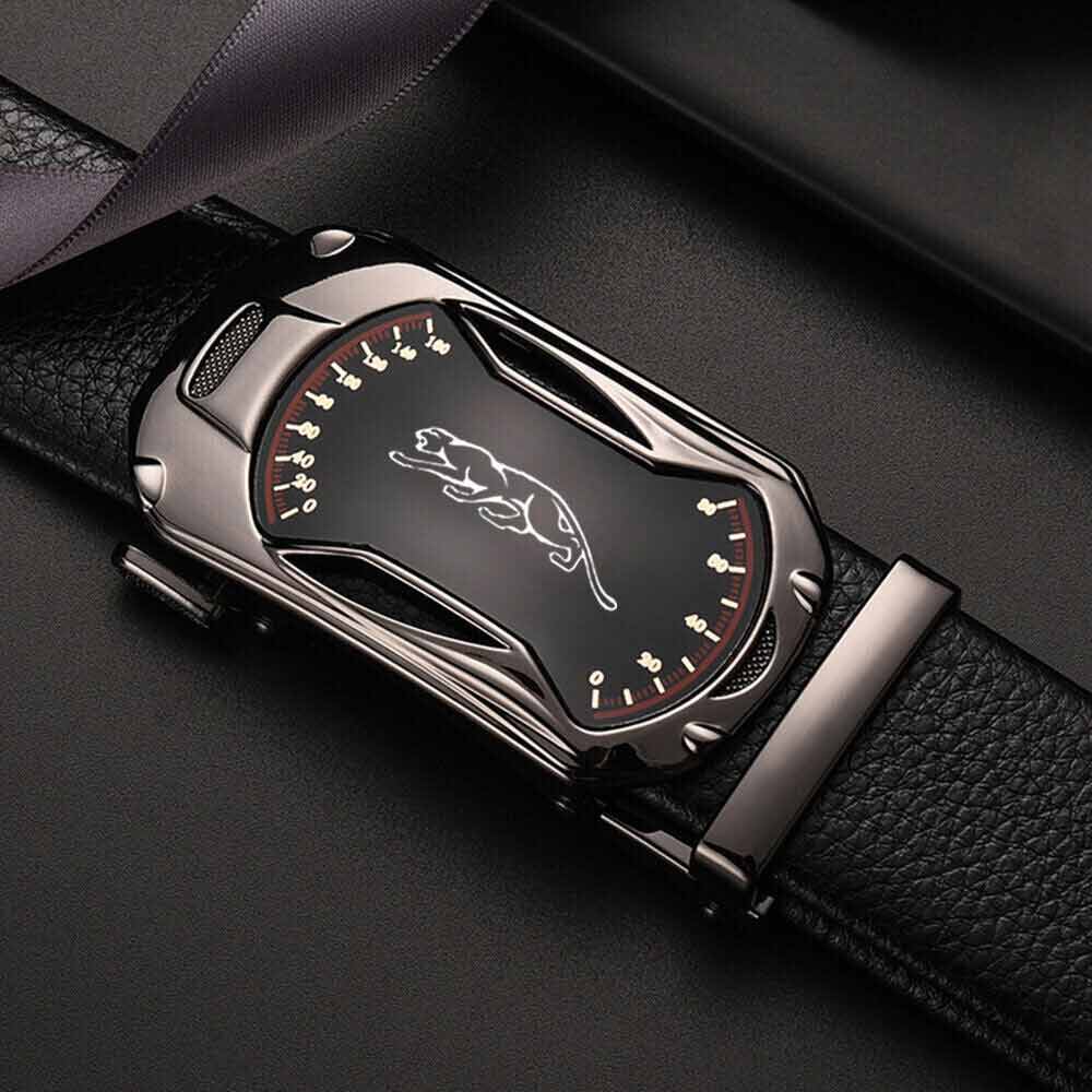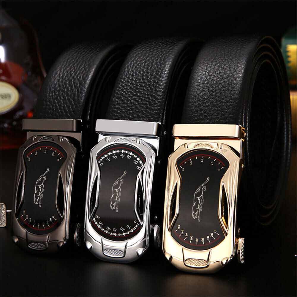 Mens Leather Belt Detachable Waistband Cuttable Strap Automatic Steel 120CM