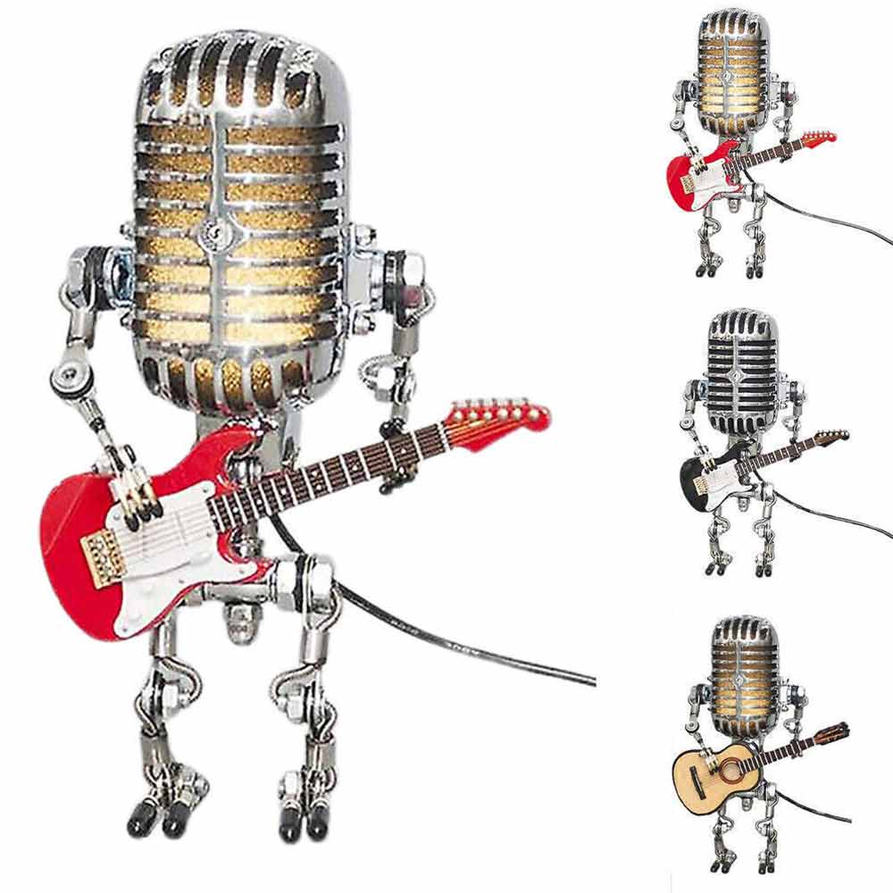 Microphone Robot Lamp with Guitar Lights Table Desktop Decorations USB Charging