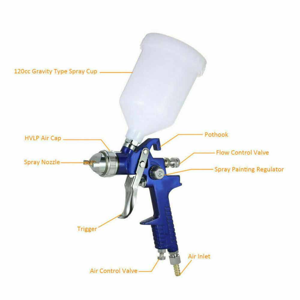 This spray gun comes with a 125ml gravity feed cup, large capacity, easy to clean.