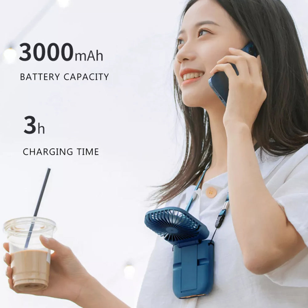 Neck hanging/handheld/desktop, three-speed wind power, built-in battery, 180° folding adjustment, mobile power supply