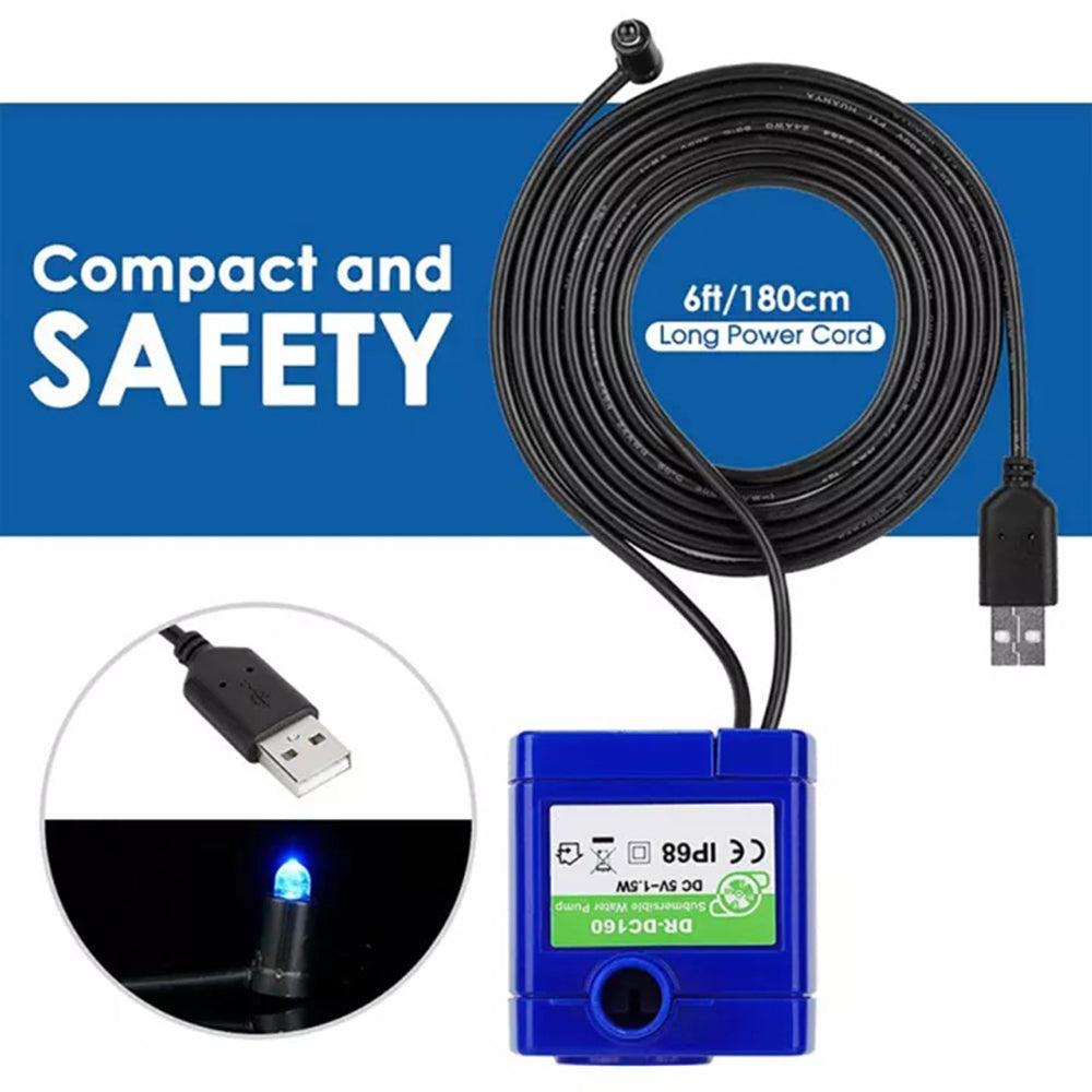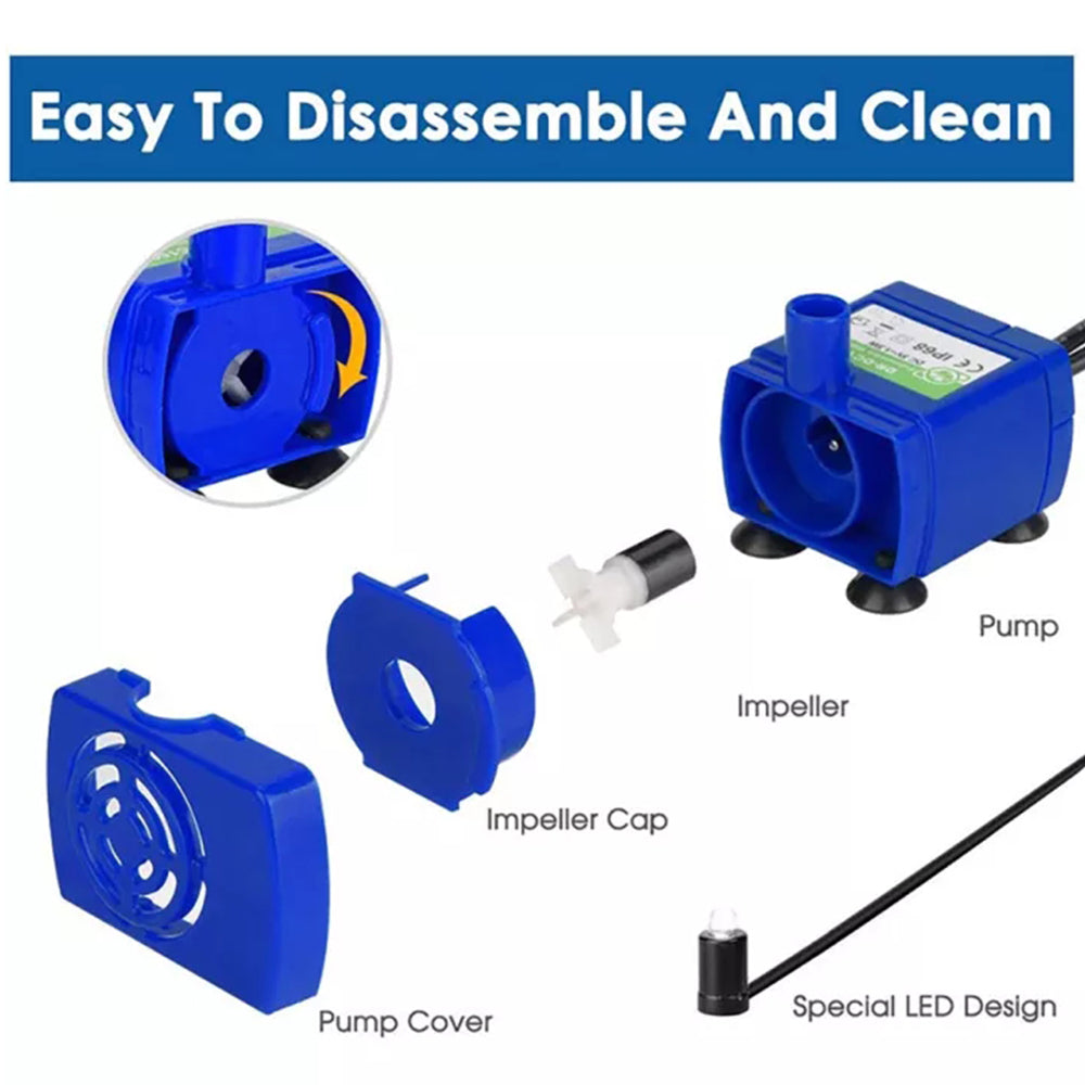 Mini Pets Drinking Fountain Pump DC USB LED For Cat Water Bowl Submersible Pump