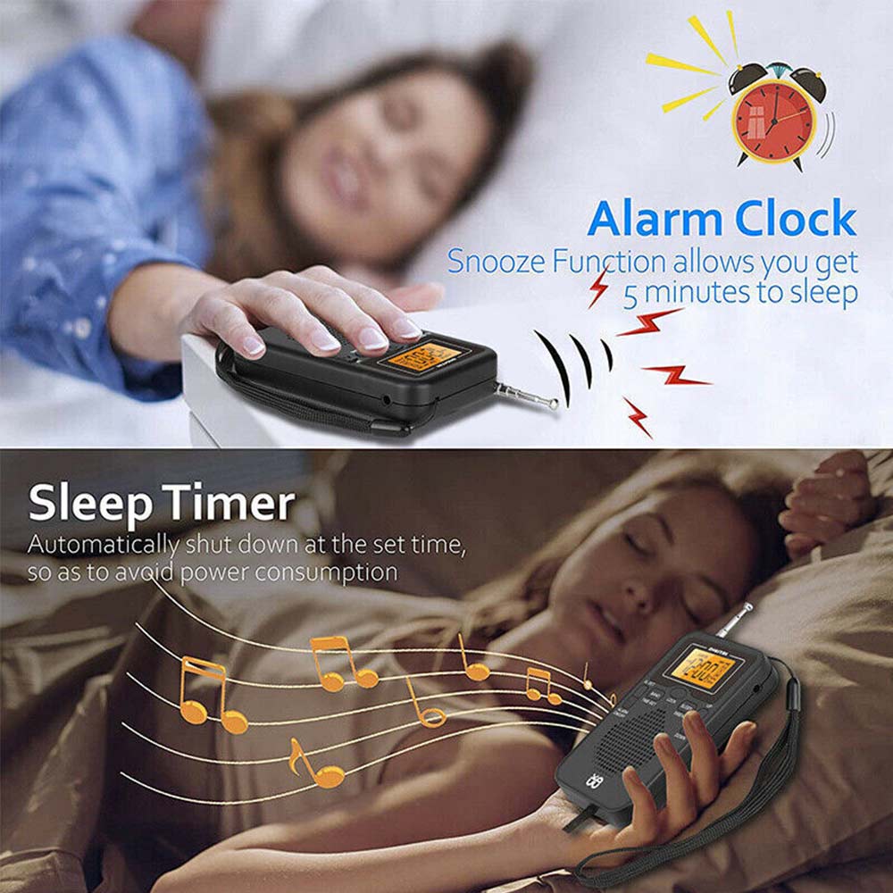 Multi-Functional: 1)Superior signal reception capability so you don't worry about missing any radio stations. 2)The lock button will prevent accidental operation during gym or outdoor activities. 3)Designed with Backlighted LCD screen to display the time for easy reading. 4)Built-in alarm clock, you can set 12/24 time system, the mini pocket radio can wake you up with beep when time's up. 5)10-90 mins sleep time can be set in this radio portable. You can enjoy the radio time before going to bed and don't worry to waste the power from the battery-operated radio.