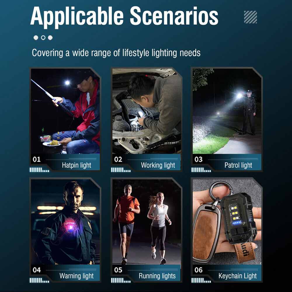 Use: hat clip light, work light, patrol light, warning light, night running light, keychain light, torch, etc.
