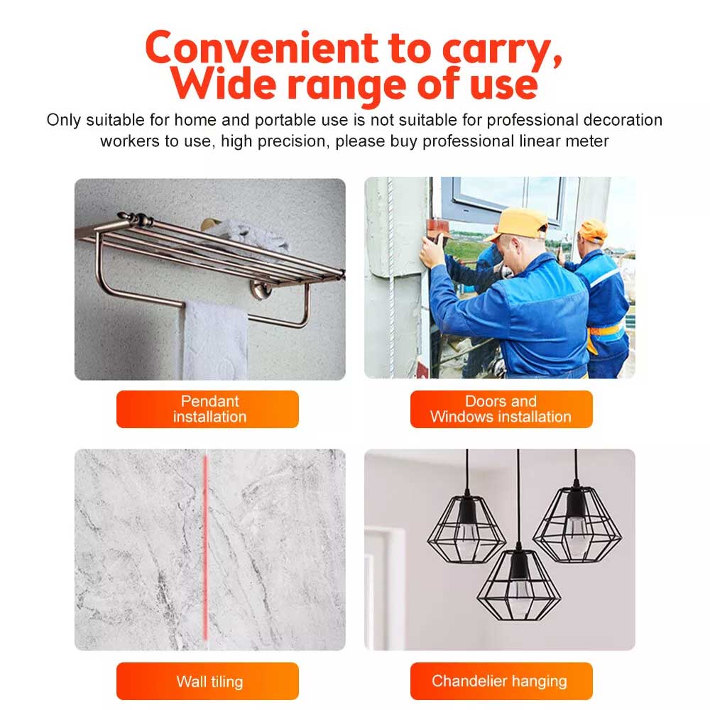 1. Project a straight laser line on any surface, not just a point. Set the strait line to any angle.