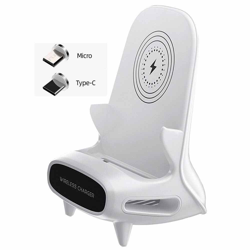 - Multifunctional Phone Holder: Mini chair wireless fast charger multifunctional phone holder upgraded wireless charging station phone stand portable fast charging dock with musical speaker function.