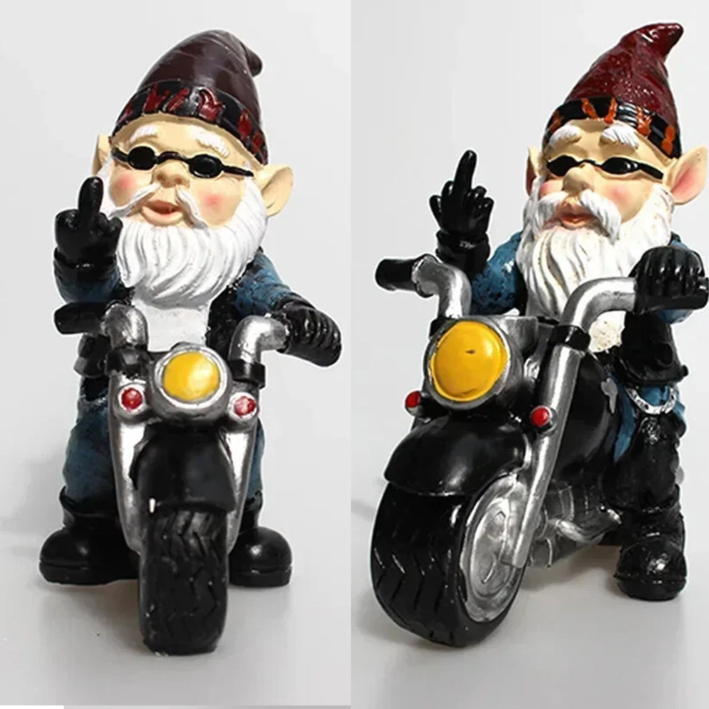 Naughty Gnome Riding Motorcycle Statue Funny Resin Crafts Home Garden Decoration