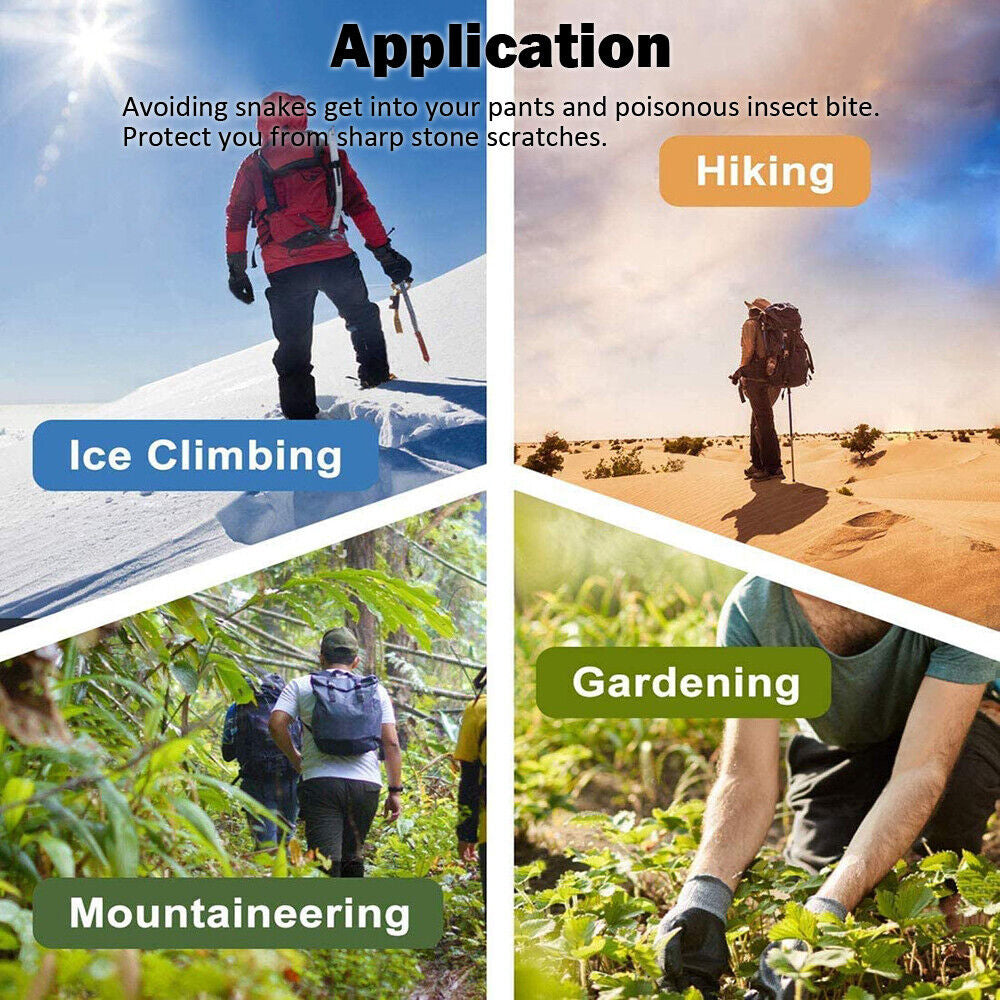 - 【Multi-usage】 - Avoiding snakes get into your pants and poisonous insect bite Protect you from sharp stone scratches. Hunting leggings is suit for skiing, hiking, fishing, camping, etc. Fold up your gaiters and easy to store them in your backpack to take along anywhere.