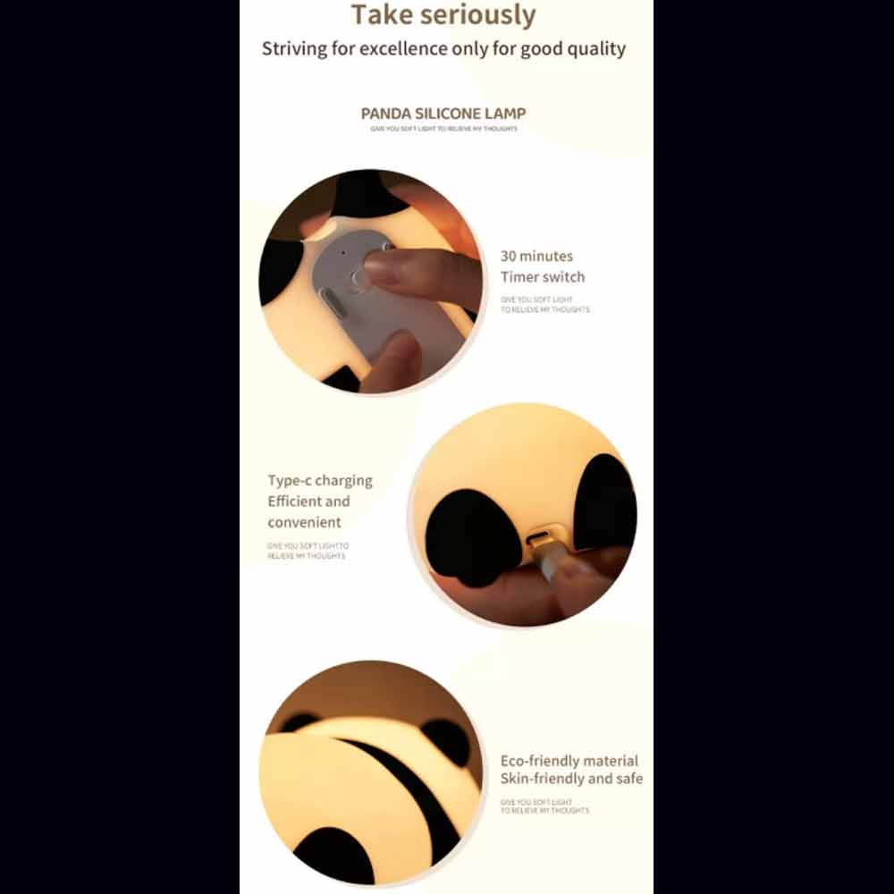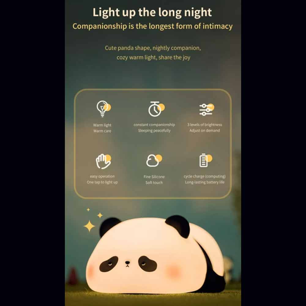 Panda Night Light for Kids Bedroom Cute Animal Silicone Nursery Night Lamp Touch