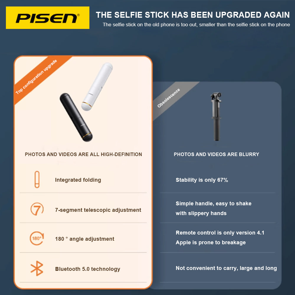 - The Pisen Ultra Mini Bluetooth Folding Selfie Stick is ideal for taking high-resolution images and movies.