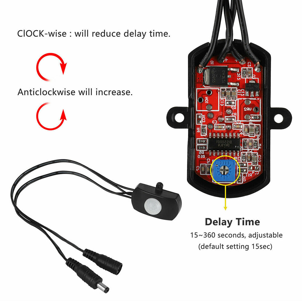 PIR MOTION SENSOR DETECTOR ACTIVATED ON OFF SWITCH LED STRIP LIGHT BAR CAMPING