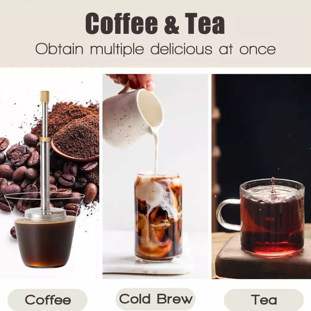 2. Easy to use: Brew coffee or tea directly in your cup to eliminate any dirt and clutter. You can be your own barista anywhere without the need for professional experience, bulky equipment, or messy cleaning. Simply add coffee grounds to this release, stir and wait, then press the plunger. It's that simple!