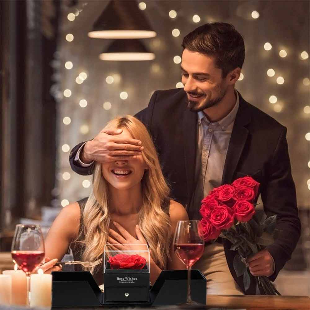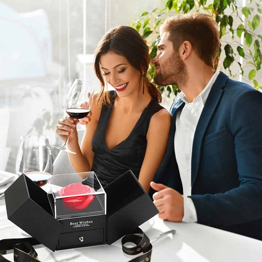 Gift Box Design: There is a drawer under the box that can be filled with rings, necklaces, bracelets, earrings, etc. (not included), with a greeting card (included) and a memorable declaration of love can be written.