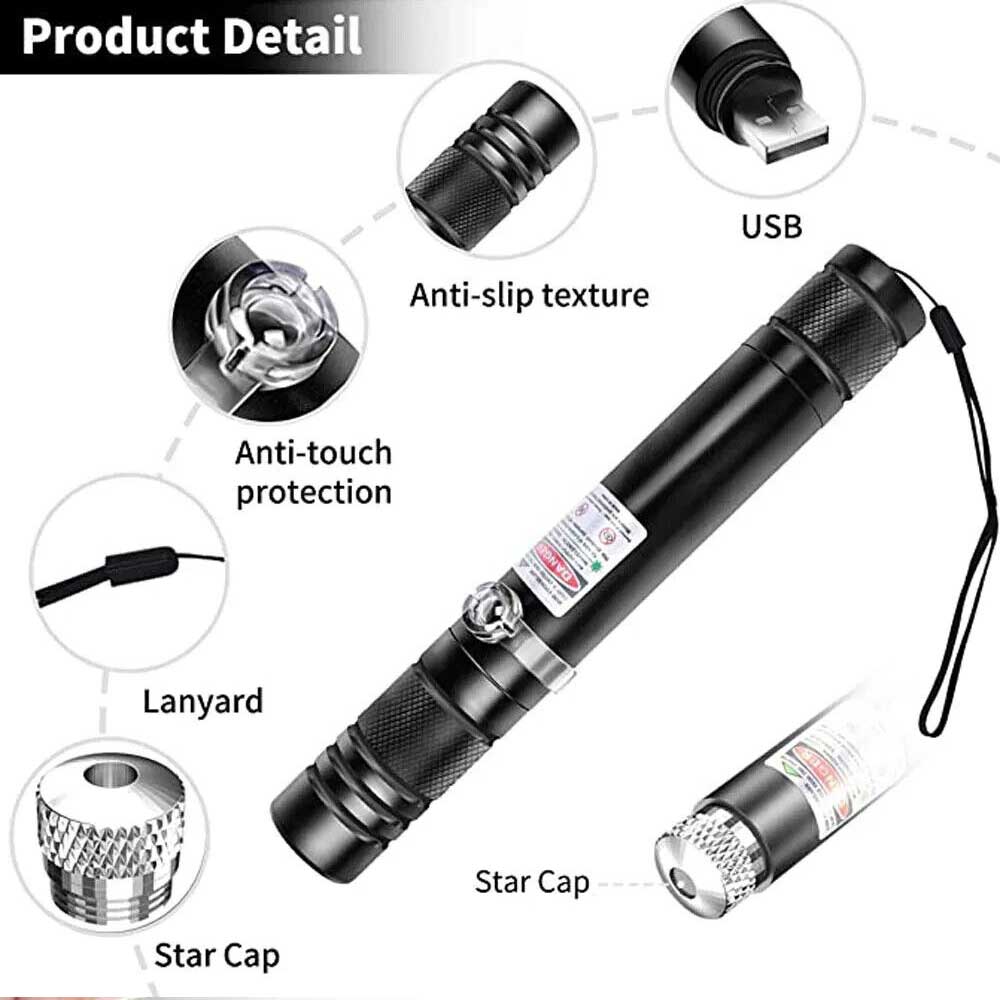 Red Aluminium Strong Green Beam Laser Pointer Pen USB Rechargeable 532nm Lazer