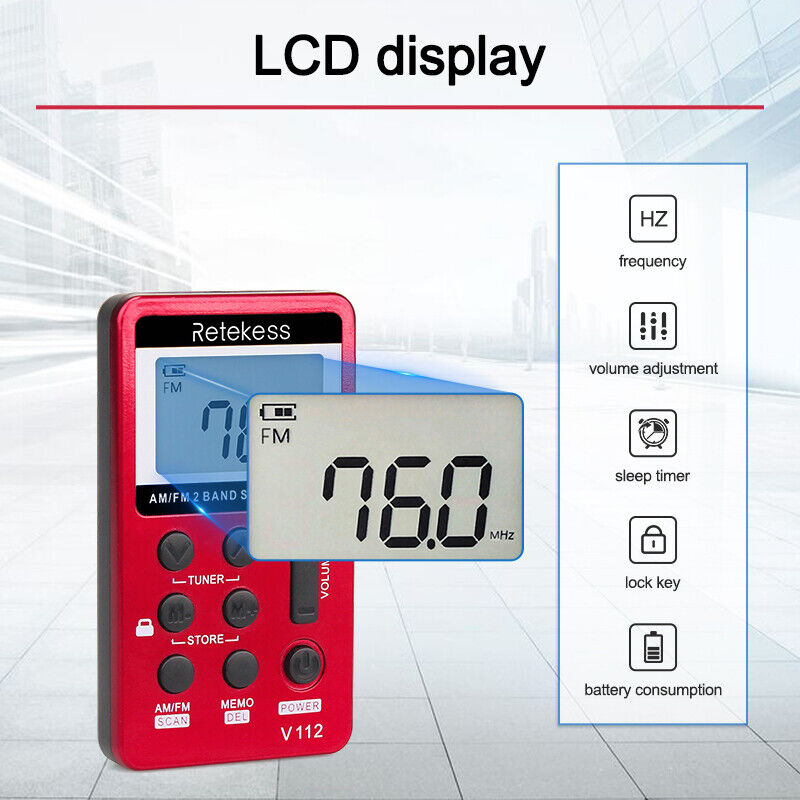 Enjoy crystal-clear radio anywhere, without the distractions of a smartphone. The Retekess V112 is an ultra-lightweight, pocket-sized AM/FM radio with a built-in rechargeable battery, perfect for walks, workouts, travel, or as an easy-to-use entertainment device for all ages.
