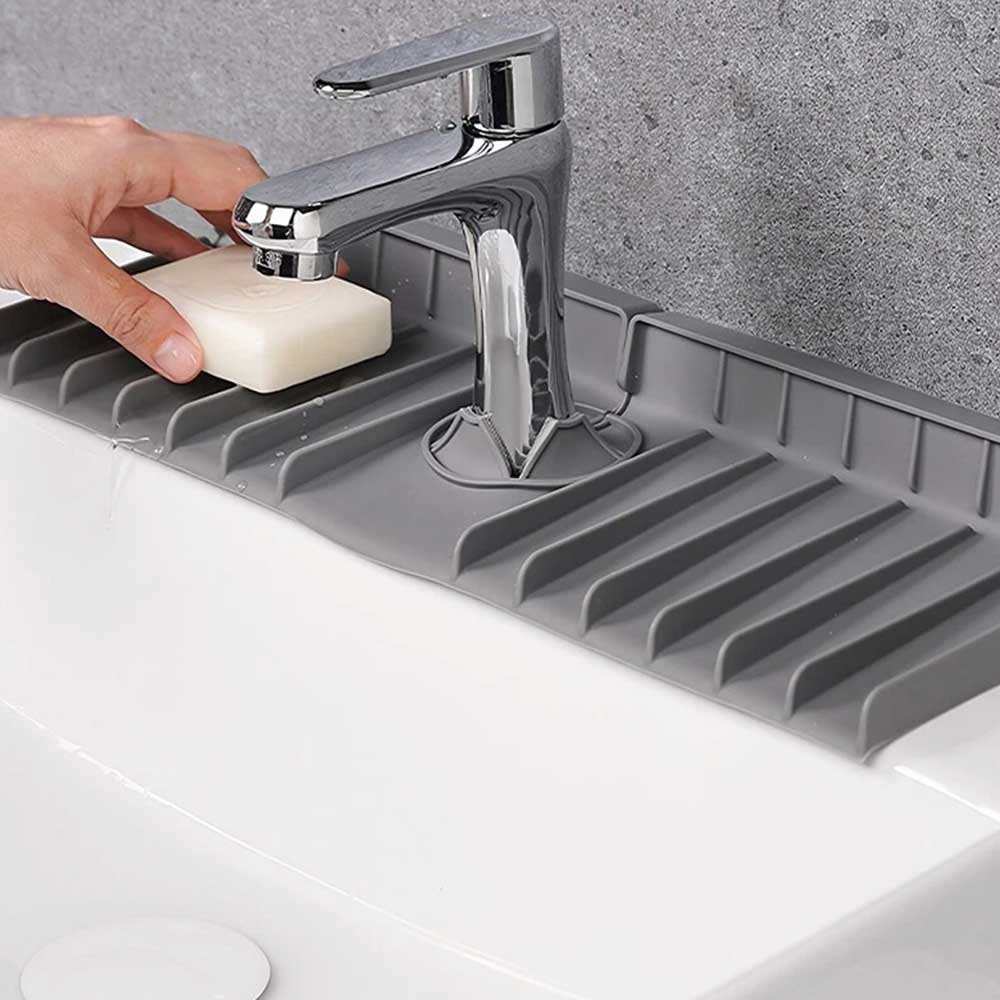 Silicone Faucet Mat - Universal Kitchen & Bathroom Sink Splash Guard with Drainage Design