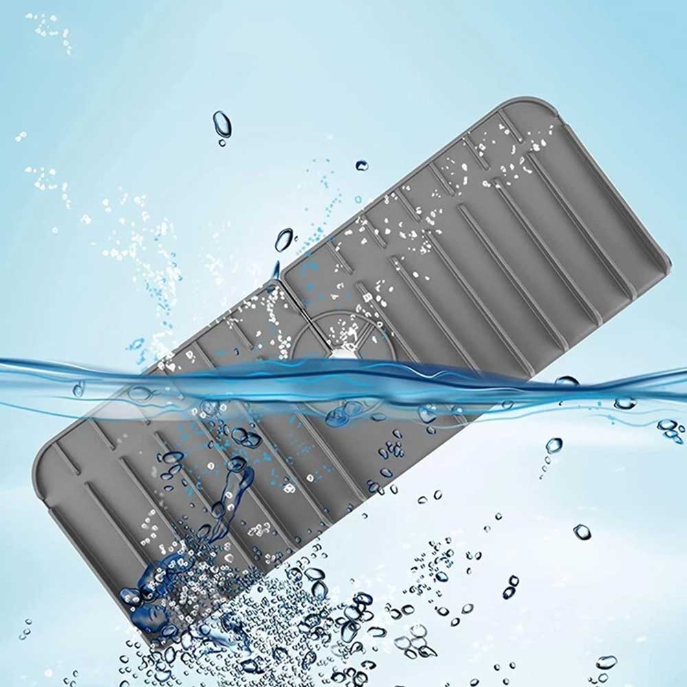 Tired of constantly wiping countertops? This upgraded silicone faucet mat solves sink splash problems once and for all! Crafted from food-grade silicone, this innovative water catcher features built-in drainage channels that direct drips back into the sink, keeping your countertops dry and clean. Perfect for kitchens, bathrooms, RVs, and more.