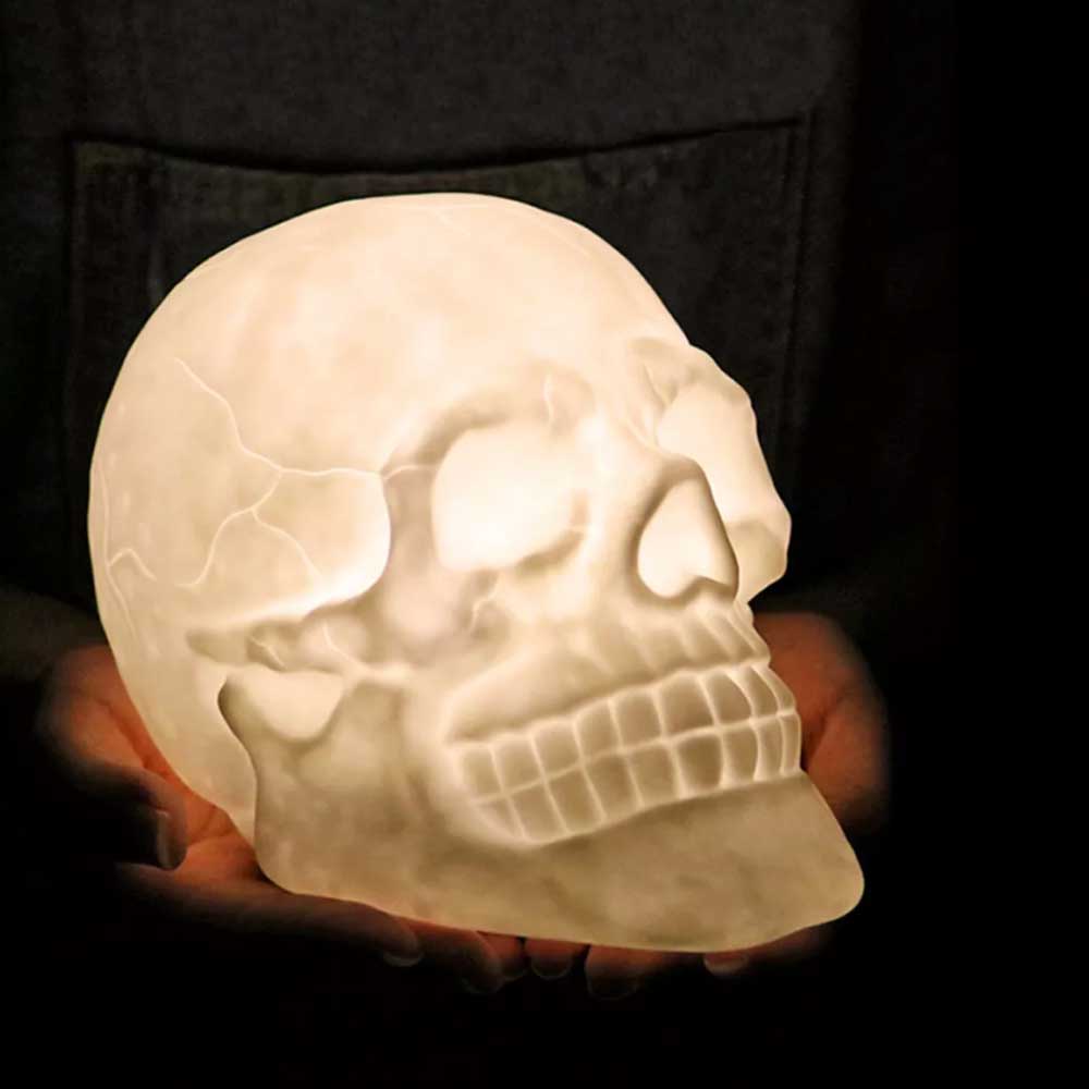 Very special and unique skull design.Gently pat the lamp, can change colorful light.