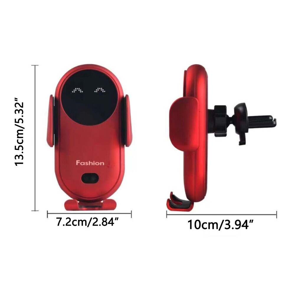 【Easy to Install】The overall size of this smart car wireless charger phone holder is about 13.5*10*7.2cm / 5.32" * 3.94" * 2.84", you can easily install it on air vent with equipped air vent clip, not blocking your driving sight.