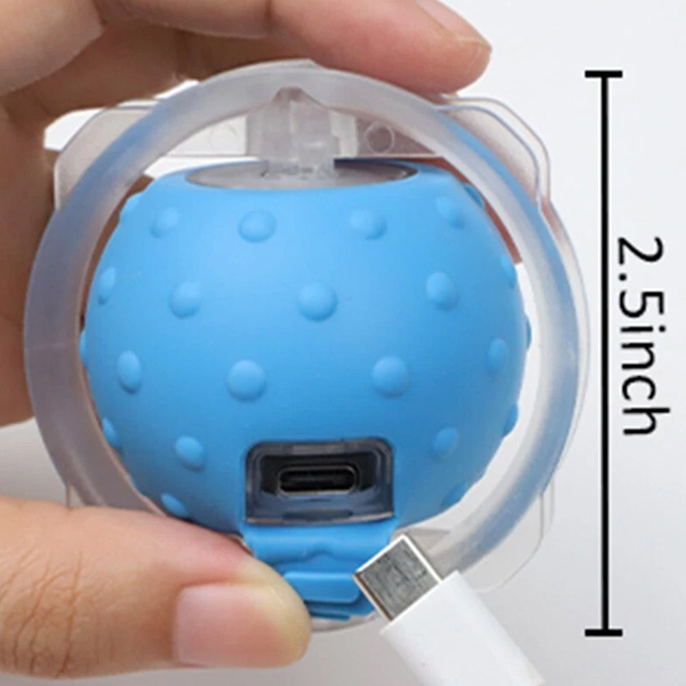 (>^ω^<) Rechargeable and indicator LED light: Built-in rechargeable battery and charged via type-c charging cable(included) saves the hassle and cost to replace batteries. A charger (not in the package) with an output voltage of 5V/1A is suggested. Color of the LED light : Normal mode-blue light, active mode-purple light, interactive mode-yellow light. Double click the power key to turn off the light when working to increase the interests of the toy.