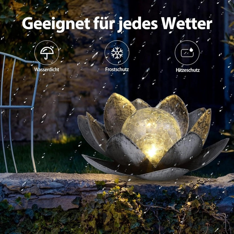 Solar Lotus Flower Light LED Damasque Silver Glass Crackle Ball Ornament 28cm