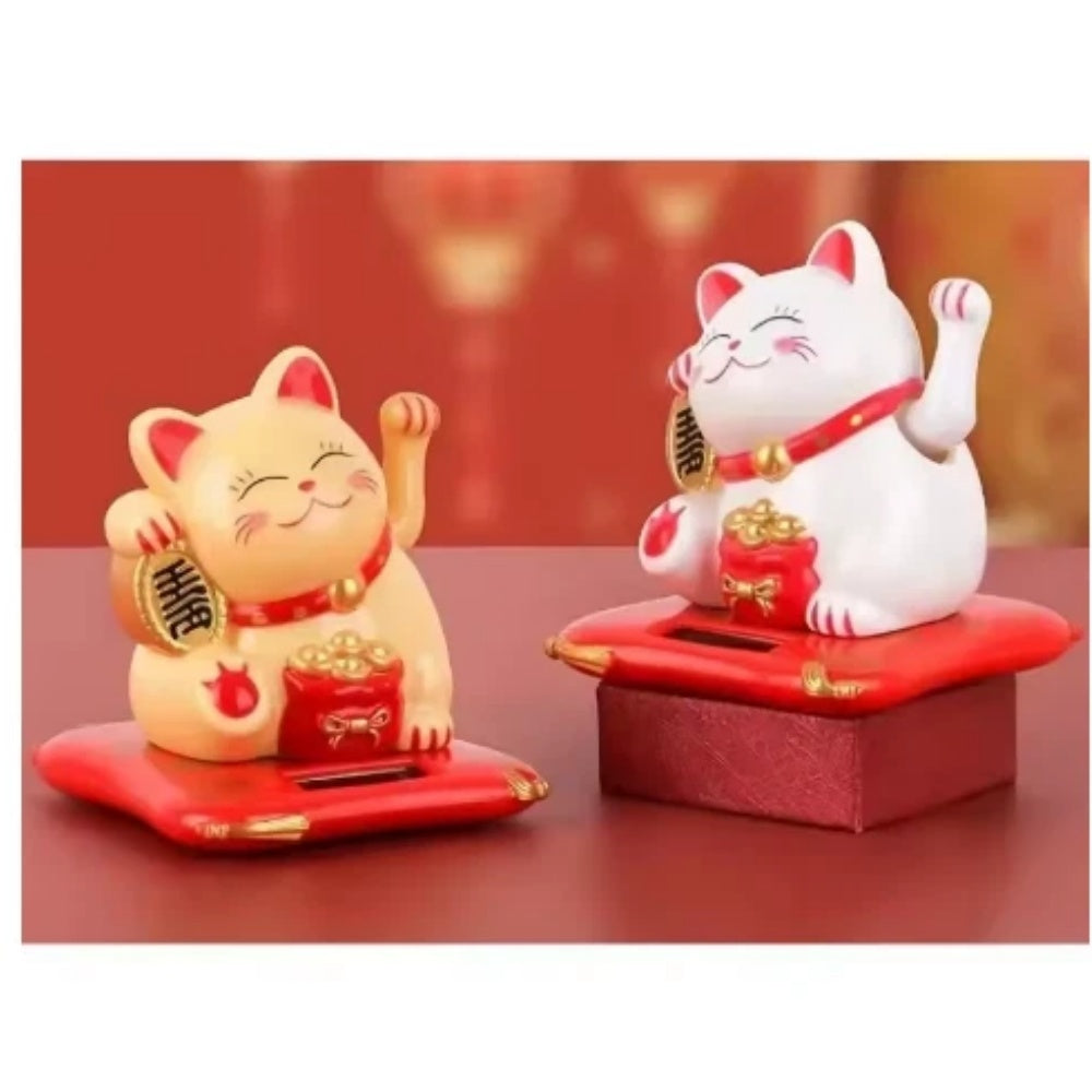 Solar Powered Chinese Maneki Neko Lucky Waving Beckoning Fortune Gift Cat Decor