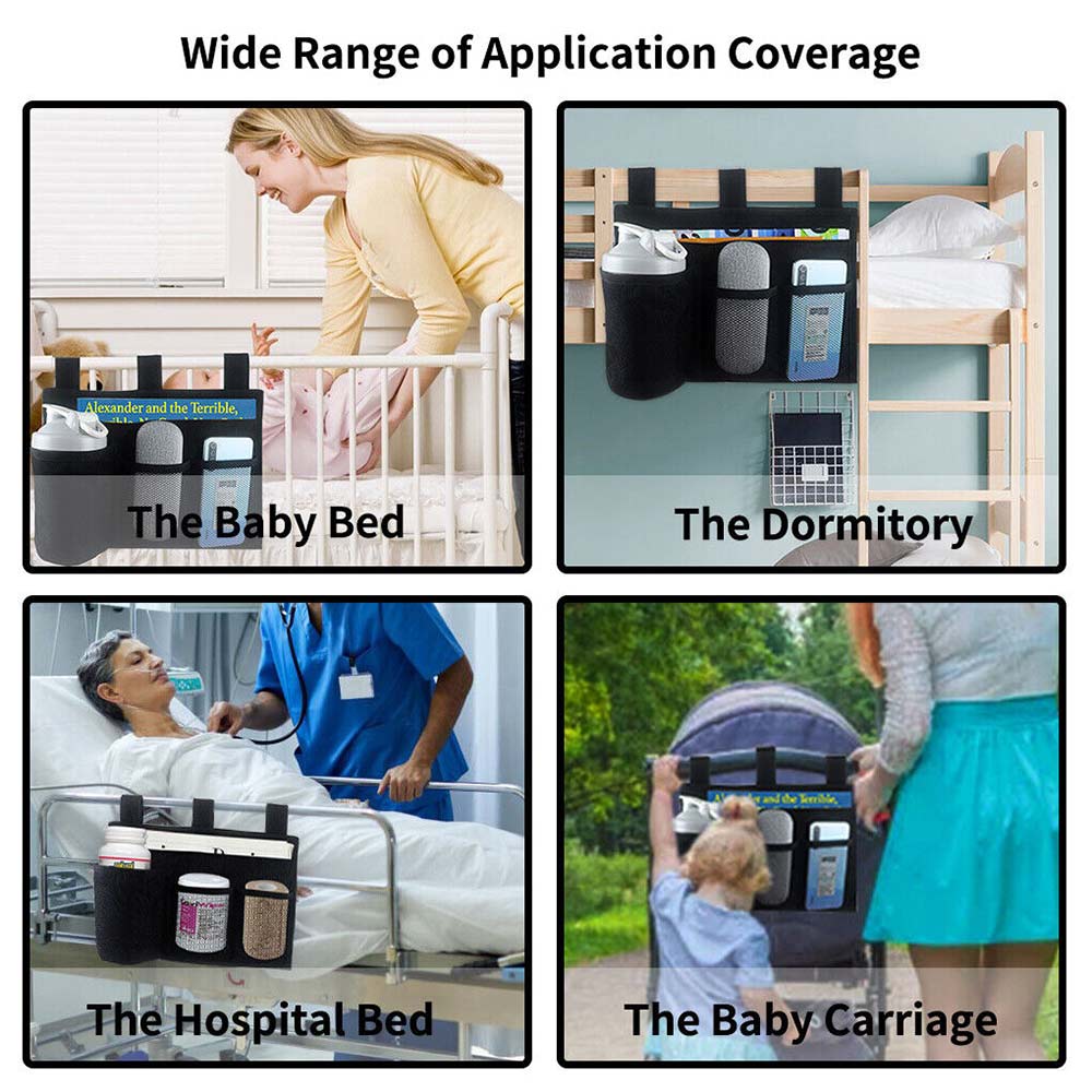 Easy installation: The bedside storage bag is easy to install, and there are three belts on the back that can be firmly hung on the guide rail.