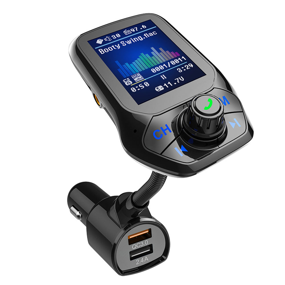• Nulaxy (Upgraded Landscape Screen) KM29 Bluetooth FM Transmitter 1.8" Color Screen Car Bluetooth Adapter W/ QC3.0, Car Battery Reading, Handsfree Calling, Support USB Drive, Tf Card, Aux, EQ Mode