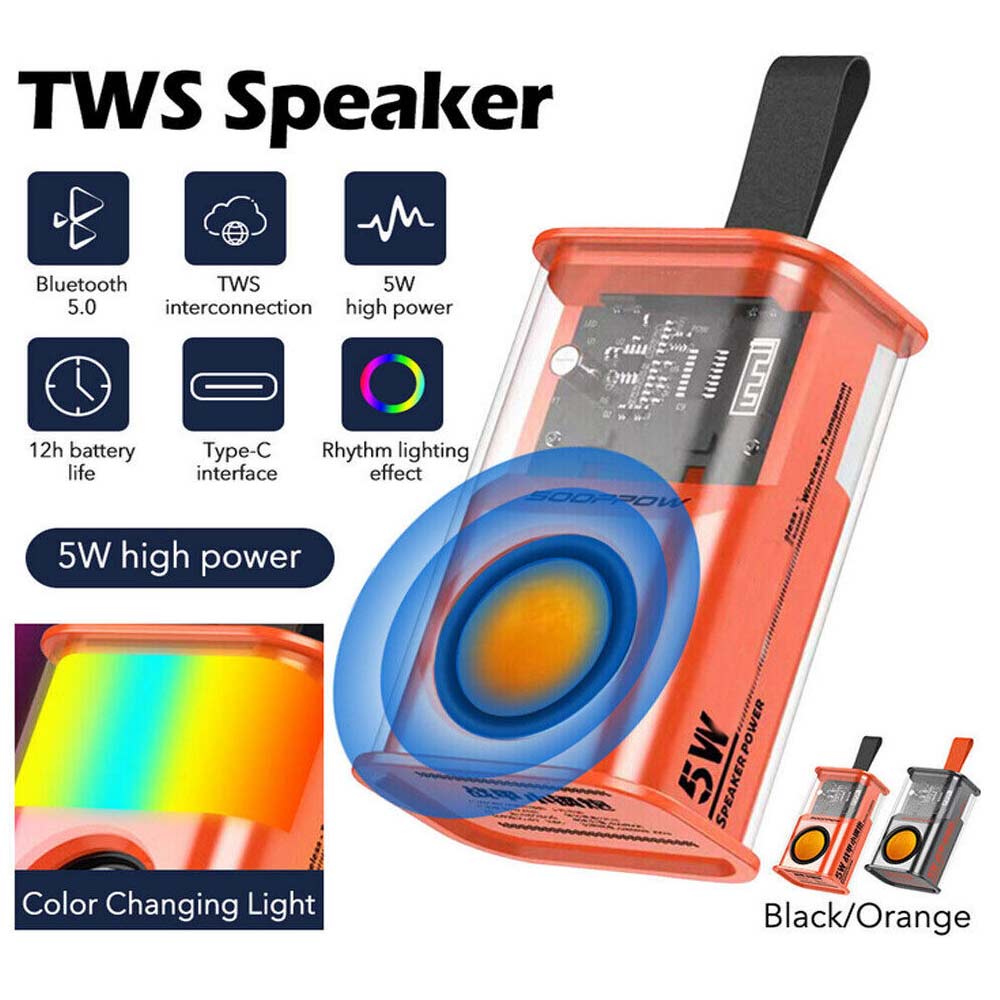 Transparent Mecha Mini Wireless Bluetooth5.0 Speaker Bass Micro Portable Speaker