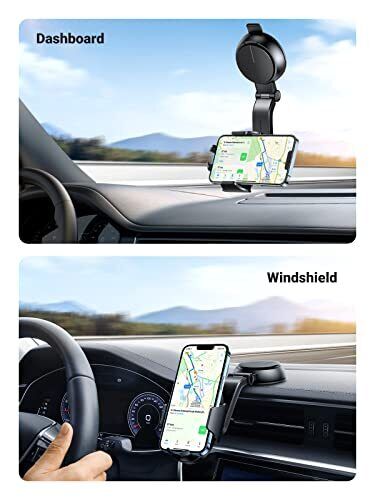 Stable and Secure Mount: With the anti-slip rubber stripe and silicone pads on the clamp, this dashboard suction car mount enables you to install this phone holder securely on the car dash without falling off and protect your phone from dropping and scratching.