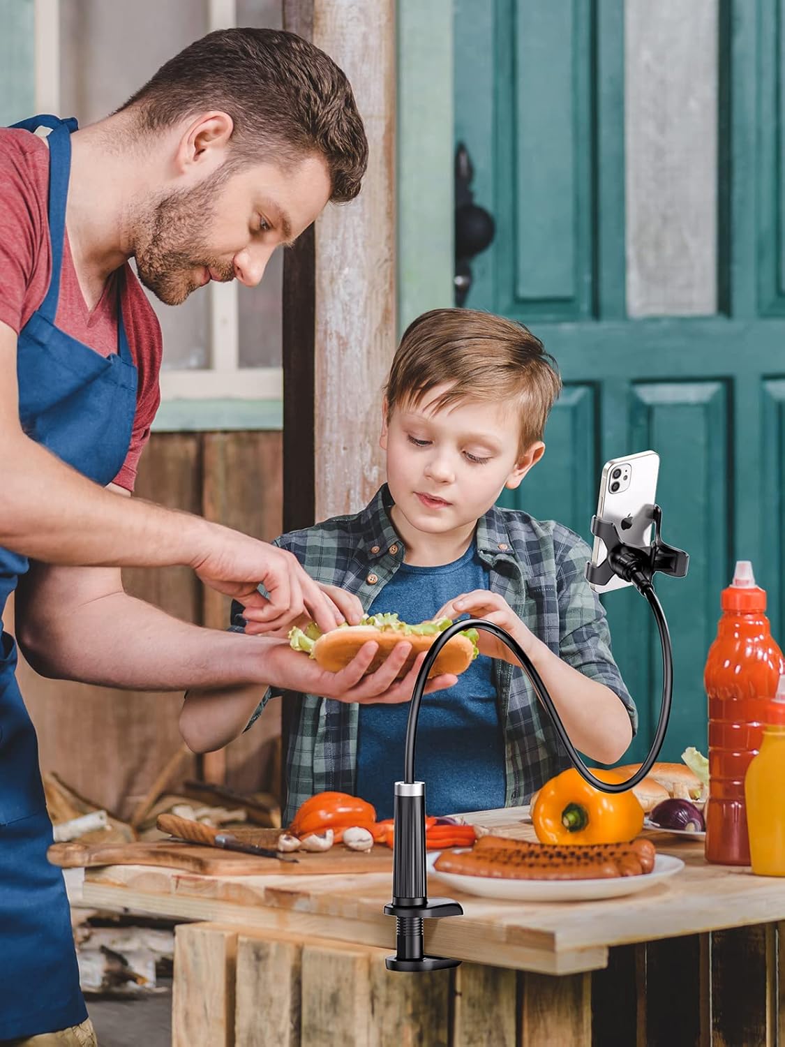 Ergonomic Design: The Gooseneck Phone Stand secures your smartphone overhead that helps to reduce neck/shoulder pain caused by long-term bending and offers a cozy way for reading, watching videos, video conferencing, video calls, video chat.