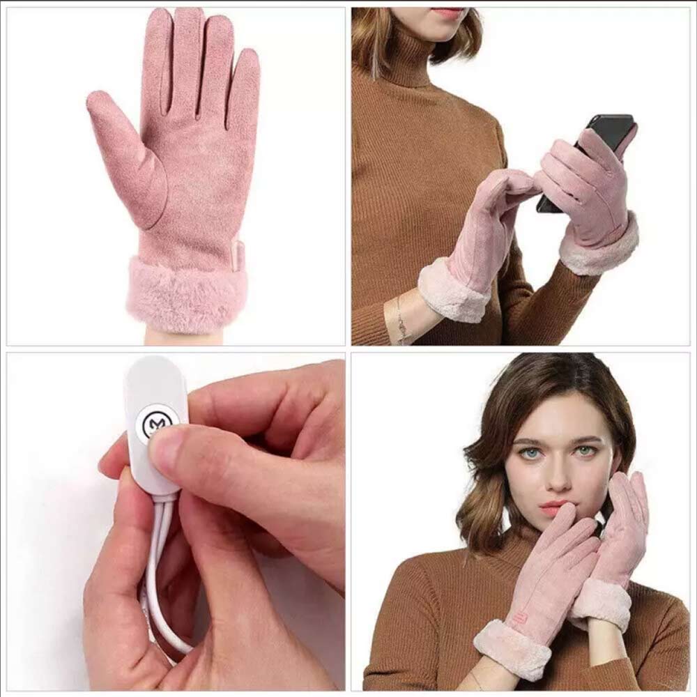 USB Plug-in Heated Gloves Hand Warmer Women Hands Ladies Winter Gloves