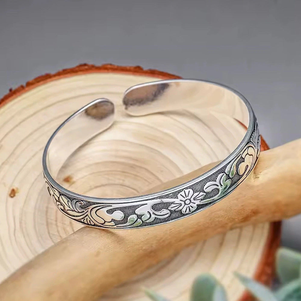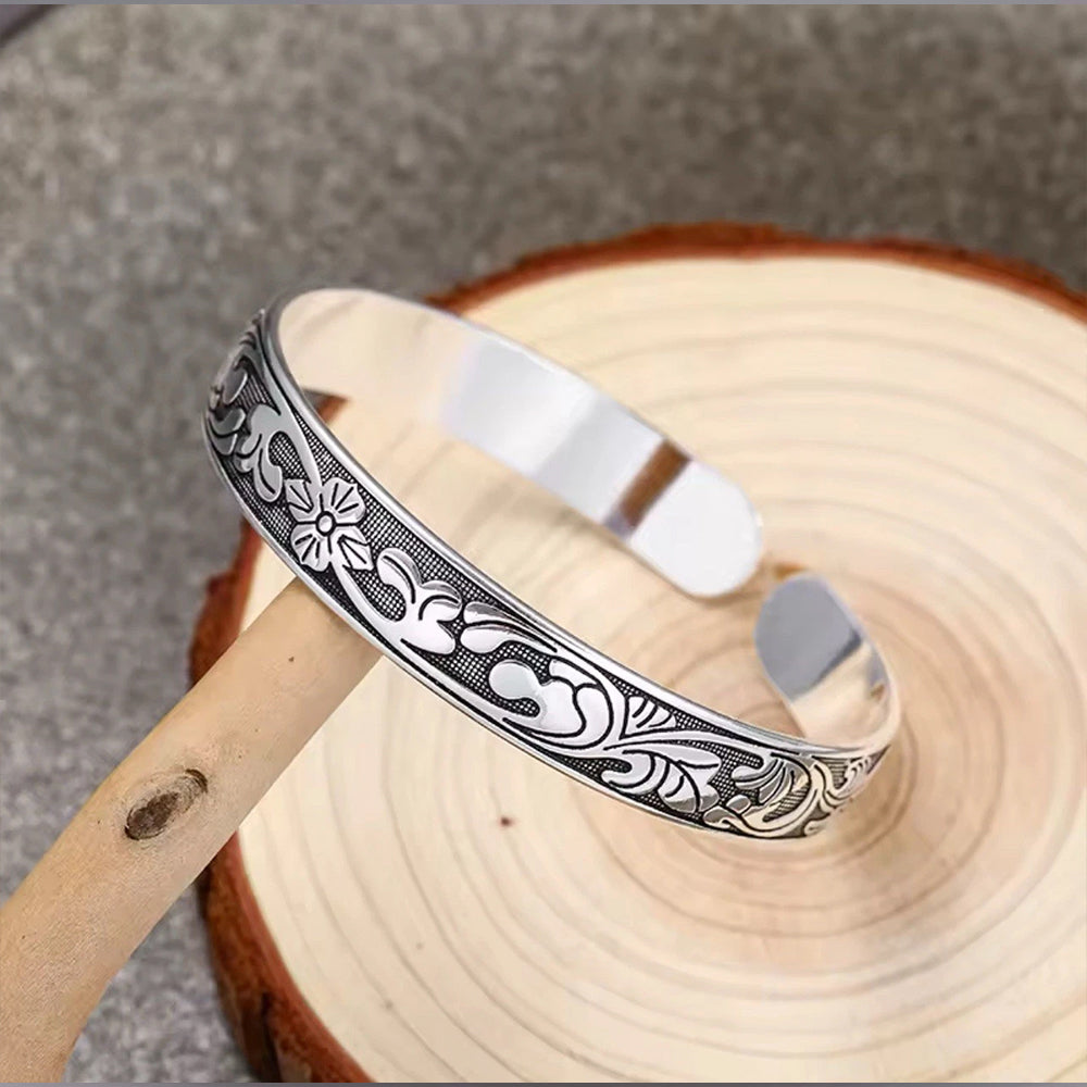 Women Men 925 Sterling Silver Jewelry Flower Charm Cuff Bangle Bracelet Gift