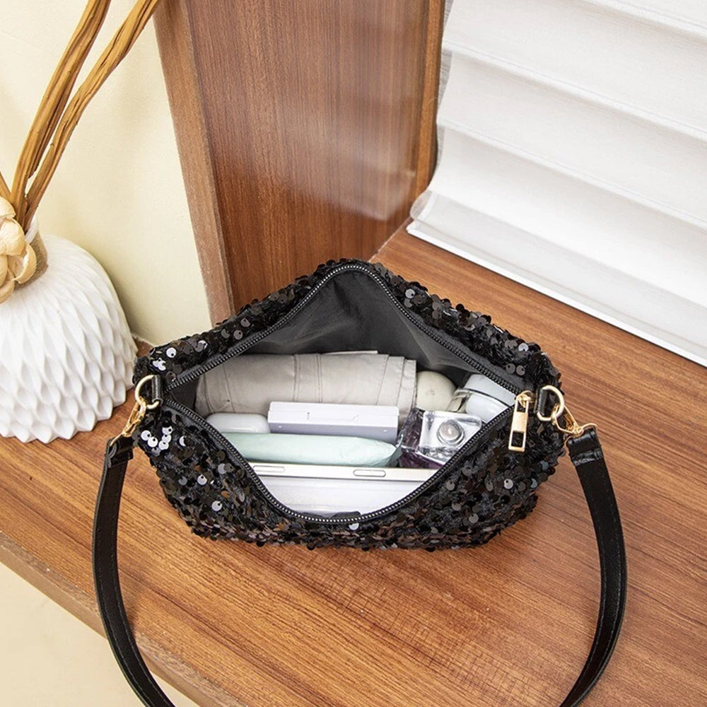 Shine at every event with this stunning sequin-embellished shoulder bag! Crafted from high-quality polyester with a dazzling all-over sequin coverage, this versatile clutch transforms from day to night. Features an elegant chain strap for shoulder carry and a sleek compact design perfect for parties, weddings, and special occasions.