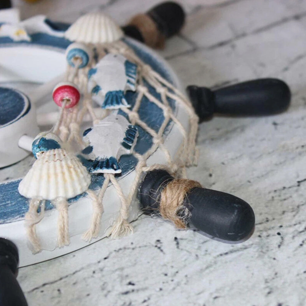 Capture the essence of the seaside with this charming 23cm Wooden Ship Wheel. Designed as a complete decorative piece, it brings together classic nautical elements—a ship's wheel, a rustic rope, and natural seashells—to create a perfectly curated beach-themed display for your home. The hand-painted light blue spokes add a refreshing splash of ocean color, making it an instant focal point on any wall.