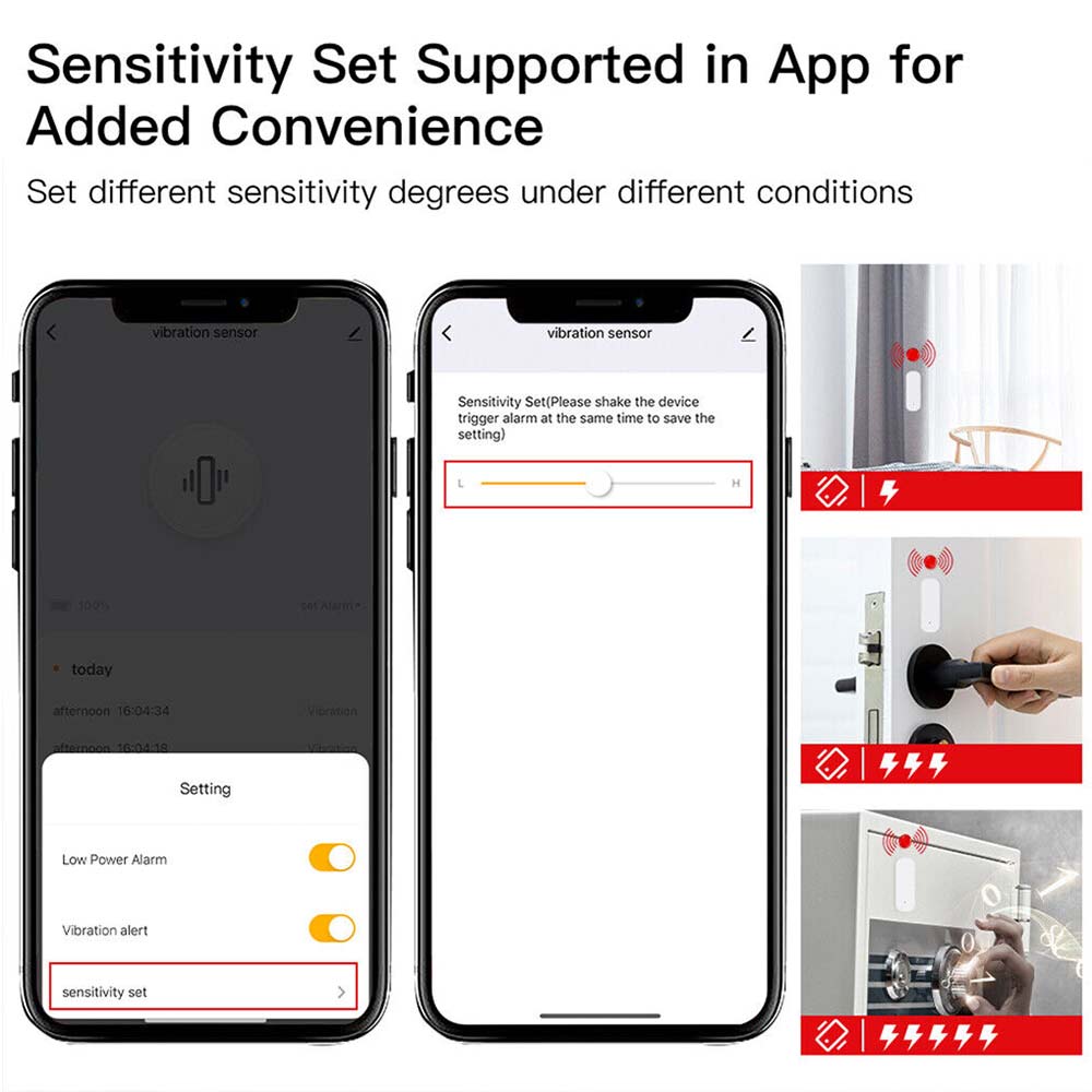 Smart: This wireless vibration sensor is designed to be APP remote control so that you can know the home situation even when you are outside.
